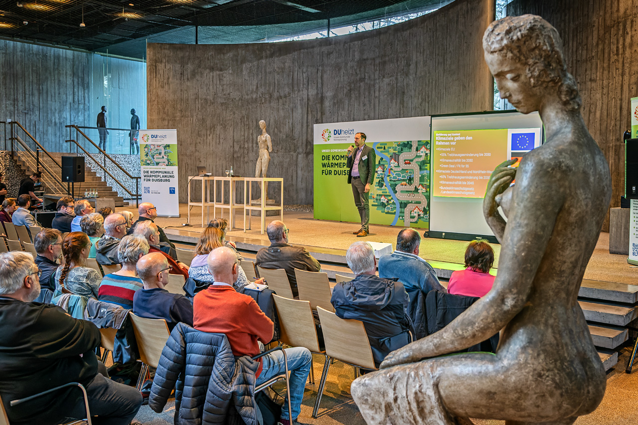 Am 27.03.2025 haben wir im Stadtbezirk Mitte zum Bürgerdialog eingeladen. Mit rund 50 interessierten Bürgerinnen und Bürgern haben wir, nach einer Begrüßung durch Bezirksbürgermeisterin Elvira Ulitzka, auf den Bezirk zugeschnittene Informationen zum aktuellen Planungsstand der zukünftigen Wärmeversorgung diskutiert. Darüber hinaus konnten sie sich sowohl an den Ständen der Stadtwerke Duisburg und der Fernwärme Duisburg als auch an den Ständen der Stabsstelle Klimaschutz der Stadt, der Verbraucherzentrale sowie der SHK-Innung und der Sparkasse beraten lassen.