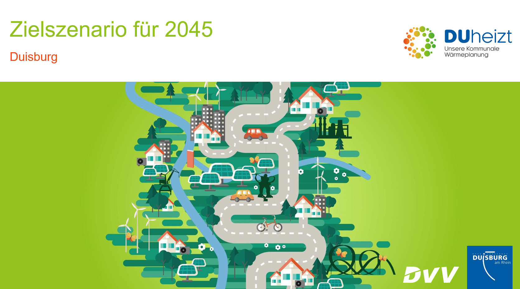 Das Zielszenario zeigt die mögliche Wärmeversorgung im Zieljahr 2045 basierend auf den Eignungsgebieten und nutzbaren Potenzialen. Es werden verschiedene Wege zur künftigen, klimaneutralen Wärmeversorgung entwickelt, bewertet und verortet.